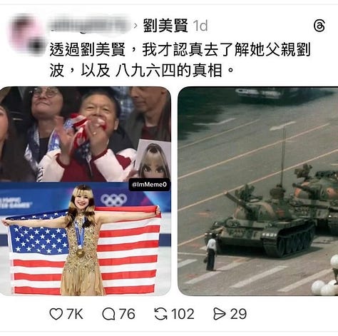 【冬奥花滑冠军 #刘美贤 唤醒尘封 #六四 记忆】