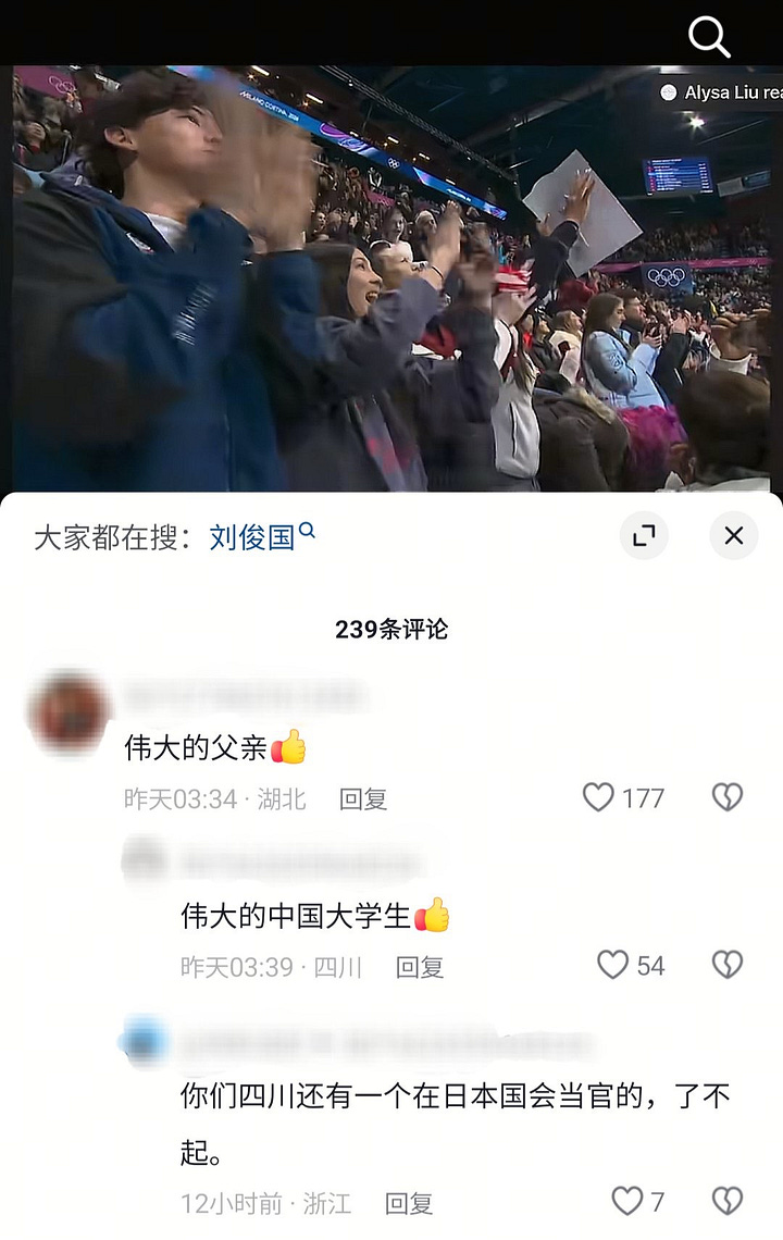 Because Arthur Liu, Alysa Liu’s father, was rescued by the Hong Kong Alliance in Support of Patriotic Democratic Movements in China’s “Operation Yellow Bird,” many netizens gained a deeper understanding of the history of this cross-border rescue operation. Arthur Liu once said, “My original name was Liu Junguo, but after fleeing to the United States, I lost my country, so I changed my name to Liu Jun.” (In Mandarin, guo means “country”). This calm statement reveals the heavy reality of exiles losing their homeland and identity.