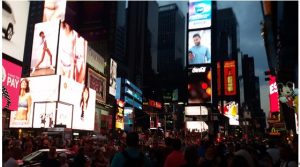 从洛克菲勒广场出来后,便来到时代广场,时代广场一带是全世界最热闹繁华的地方。我们到时代广场时天虽然还没有完全黑下来,但广场一带早已是灯火璀璨,到处闪烁着五颜六色的广告灯光,令人眼花燎乱,街上熙来攘往的人群摩肩接踵,人与人之间几乎没有什么间隙,都在观赏大都会广场的夜景,或是把手机和相机举过周围人群的头顶进行拍照和录像。据刘导说时代广场高楼上一块最大的电视屏幕,己被中共当局的新华社花巨资购得,作为对美国民众和外国游客进行欺骗宣传和洗脑的工具。想不到在中国大陆按联合国公佈的贫困标准,还有两、三亿人没有脱贫的情况之下,中共当局居然会花巨资在纽约时代广场购买一块最大的电视屏幕供自己对外进行欺骗宣传用。中共当局难道就是这样“执政为民”的吗?。