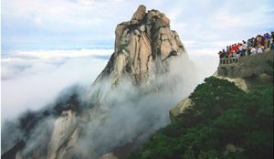安慶飛來峰位於安慶市潛山縣西部的天柱山,在“龍吟虎嘯崖”的最西端,一峰獨立入雲,峰頂巨石如蓋,渾身石骨,淺淺的水痕遍佈全身,飛來峰海拔1424米,整座山峰為一整塊巨石構成,頂有一石長約3丈有餘,圍長30余丈,高丈餘,渾圓如蓋壓在頂峰,似從天外飛來,石稱“飛來石”,峰因石名,峰頂的飛來石,像一頂華冠端端正正地戴在峰頂。
