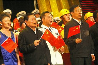 外传重庆市副市长王立军向美国官员爆料,政法委书记周永康和重庆市委书记薄熙来联手,想整垮国家副主席习近平。图为周永康(左二)和薄熙来(左五)2010年在重庆出席一场活动。(取材自中国能源化学工会网站)
