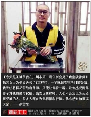习近平执政以来,他开展的反贪腐行动确实让中国的老百姓感到一线希望。但他对民主异议人士和维权人士的打压也是超乎寻常的。一方面反贪腐,一方面又把要求官员公布财产的活动人士和人权律师抓捕判刑,并对NGO和公民社会痛下杀手,企图压制人民要求自由、民主、人权的呼声。但不管怎样,正如唐荆陵律师在法庭上的自我辩护与最后陈述中所言:“‘六四’屠杀蒙尘二十六载的鲜血还在流淌,可曾击中你的心房?维权者绝望和痛苦的呻吟,可曾模糊你的眼睛?新疆大地点点燃起的烽烟,可曾灼痛你的心田?百余藏族同胞点燃自己的火炬,可曾惊醒你的痴迷?如果你们没有醒来,但愿你不要落在沉默的诅咒中去。我们虽然被扼住了咽喉,我们仍要呐喊,因为我们扼住了命运的咽喉。习近平或许不知道,黎明前的黑暗终不能阻止光明的到来!” 习政权可以把唐荆陵律师囚禁起来,但决没有可能扑灭唐荆陵点燃的自由火焰。