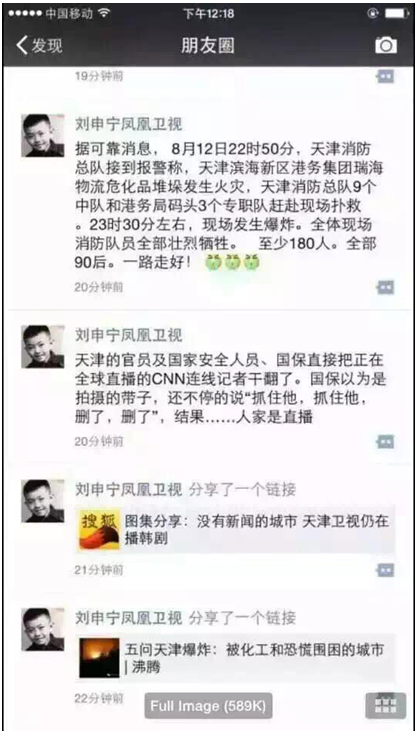 和以往一样,中国官方仍然是在把丧事当喜事办,即使事故或灾难再严重,官方媒体总能从中挖掘出“兴奋点”、“感动点”、“满意点”,让民众抹去眼泪,对官方感恩戴德。因为对官方报道的不信任,公众其实更希望从小道消息当中来了解事件的真相。不难发现,在微信朋友圈,独立的报道和评论更受欢迎,虽然受到了天津警方的威胁,但是,在事故面前,在无数无辜者伤亡的面前,有良知者更希望能够发出独立的消息和声音,来谴责官方和唤醒民众。
