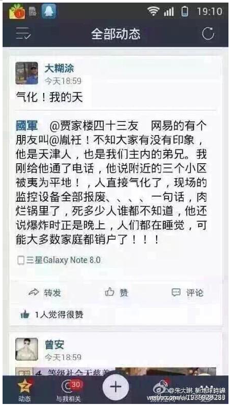 一网友评论:“你在网上发条敏感信息,一分钟以后他们就知道;然而,仓库里有些什么危险品、有多少、谁放的、啥时候放的,炸完了好几天还是不知道。用审查言论的力度审查危险品;用搞防火墙的热情防火灾,你国的所有问题都可以迎刃而解。”