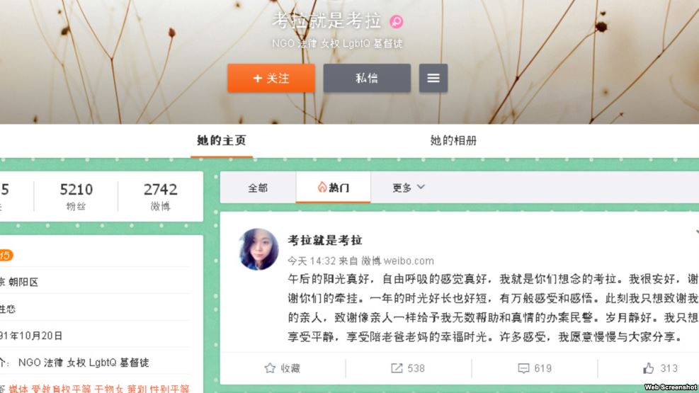 不过,网上有网友质疑赵威的微博是否是由她本人控制。有分析表示,外界对赵威案的高度关注,对于她能获得取保候审起了关键作用。而据香港中国维权律师关注组7月4日的最新统计,目前仍有23位涉及709大抓捕的律师、律所人员和其他维权人士被当局关押,多数已有将近一年的时间。