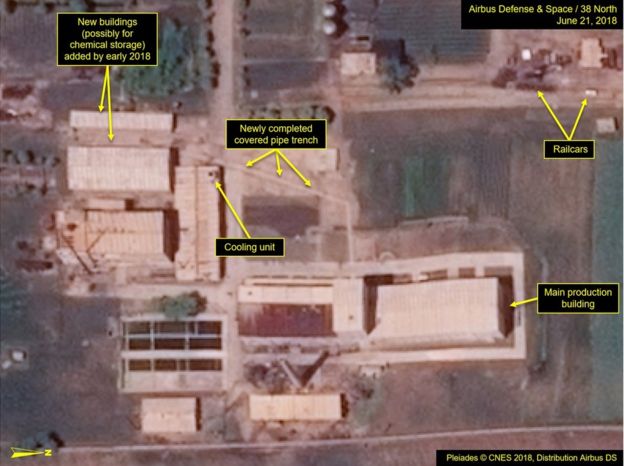 朝鲜监察组织三八北线(38 North)最近亦引述6月21日的商业卫星图象资料,称朝鲜宁边核科学研究中心,正以“高速”进行设施改善工程,而在浓缩铀的厂房的天花一些水蒸气造成的染色,亦可推测到厂房仍在运作。