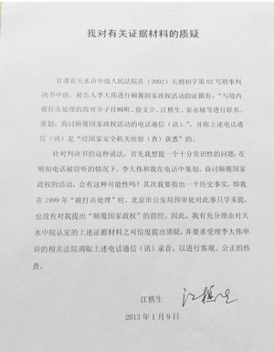 刑初字第02号刑事判决第七页认定:我与所谓的敌对分子任畹町、徐文立、江棋生、秦永敏等进行联系、相互传递资料,策划、商讨颠覆国家政权的对策。如果这样的认定能够成立,那么依照法理我和任畹町、徐文立、江棋生秦永敏等人应该是共同犯罪,可是任畹町、徐文立、江棋生秦永敏等人非但没有与本人一同受到起诉审判,而且在本案卷宗中也没有任畹町、徐文立、秦永敏、江棋生对本案的任何证词,更为离奇的是任畹町2014年,持中国护照出国,现在自由的生活在法国巴黎。我出狱后将我案判决书公开,徐文立、秦永敏、江棋生等看到判决后均感到十分惊讶愤怒,并写出真实事实为证,要求国家司法机关纠正错案(详情请看:附件徐文立、秦永敏、江棋生的证明材料)。