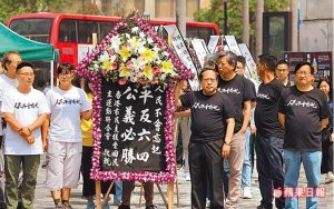 香港支联会昨举办祭祝六四死难者活动,要求平反六四。香港《苹果日报》