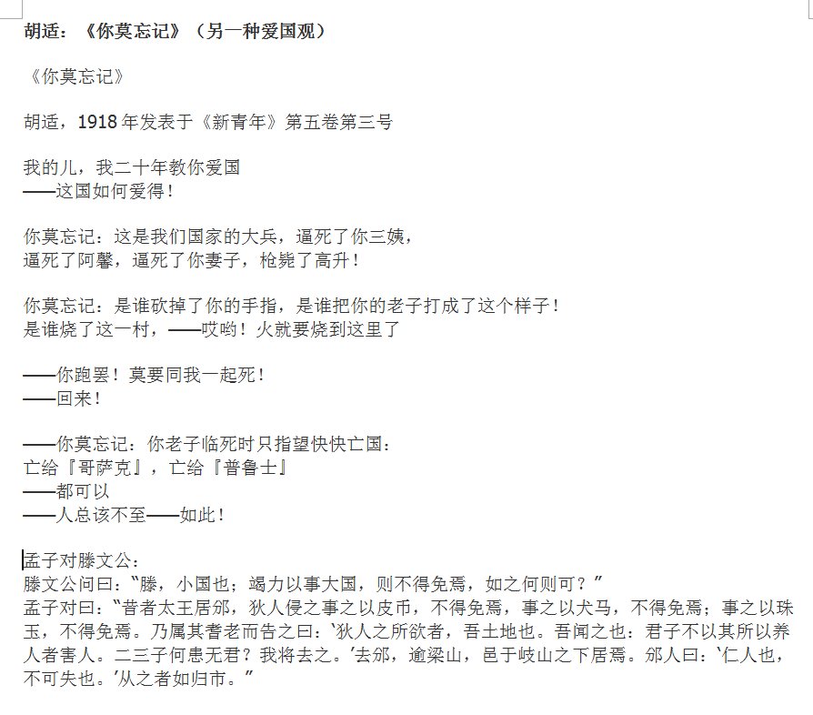 否则就不好解释胡适另一句:“今日的大患在于全国人不知耻。”胡适说的是“全国人”,不是指某一群某几个。如果再多读点胡适,类似这种悲愤的文字还有很多,都似乎为他那句“中国不亡是无天理”做注脚,只是我们一些局外人反而因害怕不敢承认,想想蛮有意思。
