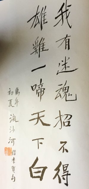 陈墨负责封面设计和扉页的题字,他找到流沙河老师为《鸡鸣集》题字。沙河老师非常支持民间诗社的活动,他的字官员用钱买,他不写。而对我们,他不但免费给《鸡鸣集》题字,题写了书名,还写了一幅对联送给陈墨。