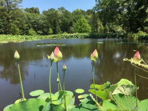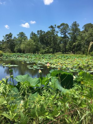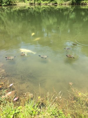 可怜的乌龟和锦鲤,一听到动静就浮出水面,以为有人来喂食。 院中杂草丛生,只有游人二三。 尽管如此,我打算再去。只因这里是莫比尔市,唯一能看到荷花的地方,同时还有几分野趣,估计夏夜能听到蛩吟和蛙鸣。