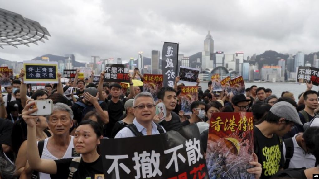 华盛顿 —香港市民星期天继续走上街头,参加反对《逃犯条例》的游行。与以往不同的是,星期天的游行路线选在有较多中国大陆旅客的尖沙咀和高铁西九龙站,以争取他们的支持,希望到香港的大陆旅客能了解真相。