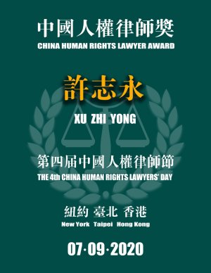 许志永持之以恒,面对打压绝不退缩的气节,乃维权律师之模范。 正如许律师所言「我们可能要去承受,用自己的承受去唤醒大众,唤醒人性中善良的一面,我们必须冲在最前面,必须一切都不怕。 」。 让我们与许志永同行,继续向民主自由法治人权的方向迈进。