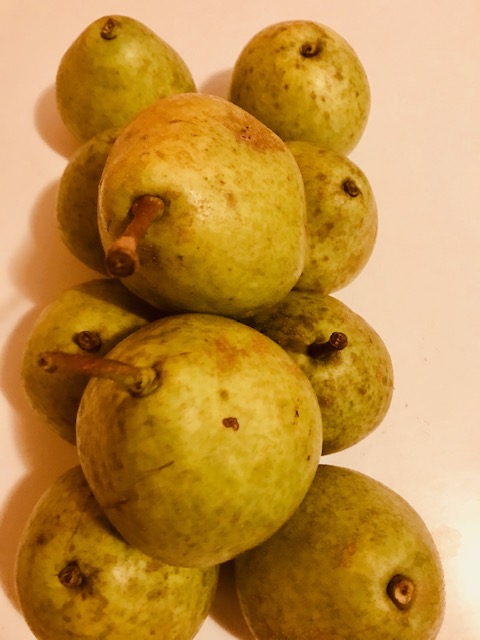湿地里、公园内、邻居家的梨落一地,我见了可惜。捡了几个,比较一下,确实大些。