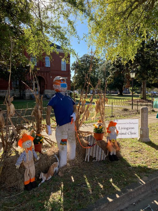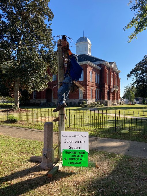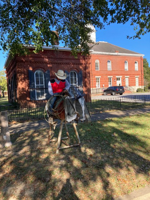 万圣夜的主题是鬼怪、吓人,以及与死亡、魔法、怪物有关的事物,也与庆祝丰收的南瓜相关。今年还联系上新冠疫情,所以,法庭大厦四周的灵异人物比往年多。而且,联系到小镇南北战争的亡灵,也凸显了小镇居民的爱好和平的愿望。以及,美国人的风趣和幽默。
