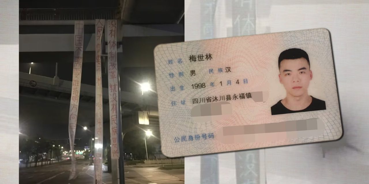 成都高架桥悬挂要求政改标语条幅义士、冲塔行动者梅世林的案情及简历