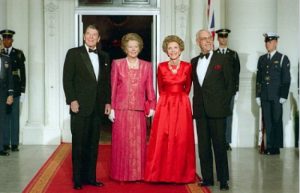 撒切尔夫妇与里根夫妇在白宫北门廊,1988年9月16日