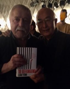由于明天的活动有我们大家都非常热爱的老战士沃尔夫 比尔曼的参加,所以,在我一生的经历中,都非常的重要,因为沃尔夫已经89岁了,而我认识沃尔夫的2010年,我第一次到德国,他才72岁。 为了向他表达我作为一个中国流亡者的敬意,我想在我们俩对话开始时,请他唱一首歌,这首歌的名字叫《长城内的中国》,他在1976年的科隆体育馆曾经唱过这首歌。 随后被东德共产党当局开除国籍。