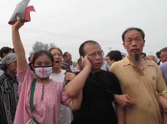 围观群众里面,有很多一看便知是有冤情的,他们面黑,满是沧桑,但却显示执着,使他们一看就跟普通市民不一样了。他们不时情绪激动的大喊着自己的冤情,喊着中国没人权,中国的公安部门是为权贵服务的。还有一个老者,同样情绪激动地说中国的权贵在法律上面,老百姓在法律的下面…..还有一个老太,她在为她的女儿喊冤,不时的擦着眼泪。其他人大概都是关心此案的人,都站在这酷暑里让人感动。
