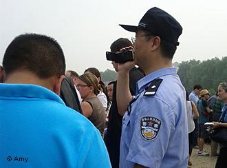 当本网信息员于8时35分赶到时,见到进法庭外的马路上已聚集200多人,正碰见5个穿便装人将一位坐轮椅的访民强行抬上警车押走,熟识的访民说,大概已被国保抓走了近20位前来声援的人。当再向前走时,看见警方早已在进法庭路口拉上警戒线,内有外国媒体记者和警察,警戒线外站着前来声援的访民和大量便衣国保及着装警察,特别是便衣国保的双眼时刻盯着访民的一举一动。一位女访民刚从包中掏一张纸时,马上就被两个年轻的便衣掹扑上前,抢过还没举起的纸张。