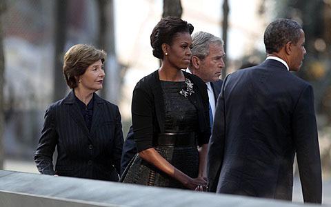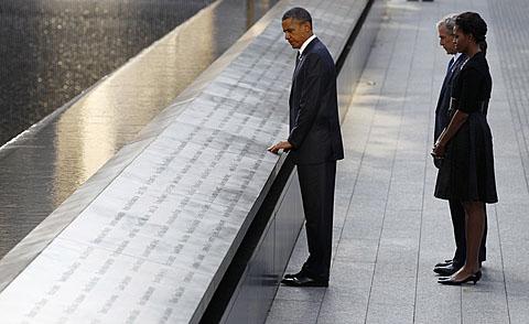 奥巴马总统夫妇和几百万美国人一起纪念了9/11恐怖袭击10周年。奥巴马夫妇到纽约市前世贸中心、宾州和五角大楼,参加了追念在那次袭击中近3千名死难者的仪式。纽约人也对9/11死难者,以及那场灾难中丧生的英雄人物进行悼念。