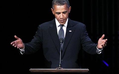 奥巴马说:“即使地虽改变,山虽动摇到海心,我们也不害怕。”