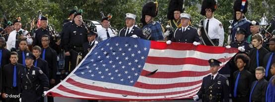 美国举行默哀仪式,悼念9•11恐怖袭击事件十周年。