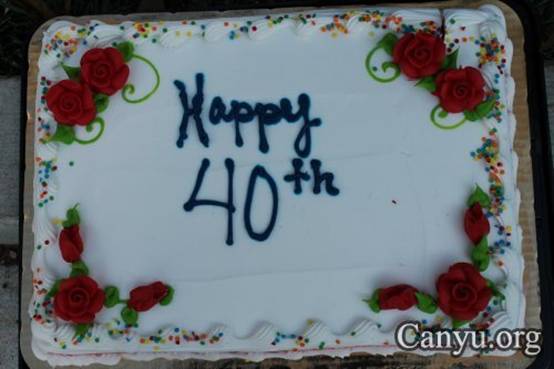 当中国时间12日零点到来的时候,现场几十名参与者一起戴上墨镜,高举陈光诚画像,祝陈光诚生日快乐,并呼喊要求释放陈光诚的口号,然后,人们一起分享了陈光诚的40岁生日蛋糕。(陈辽)