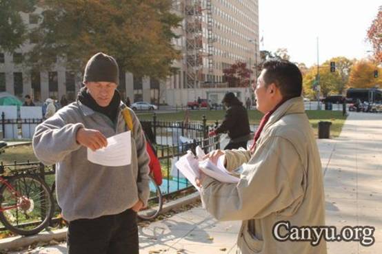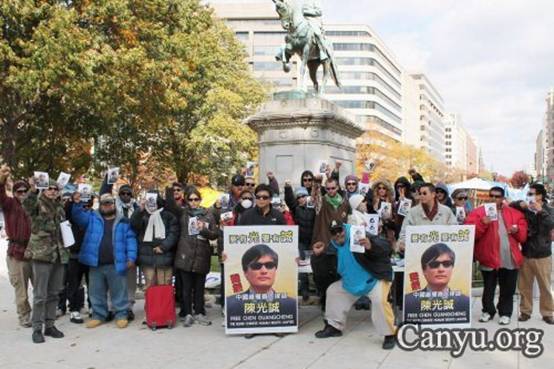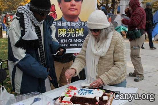 (参与2011年11月12日讯)美东时间11月11日中午,中国人权活动者和美国民众在美国首都华盛顿为中国维权人士陈光诚举办生日集会。