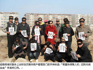 陈光诚因揭露临沂当局粗暴推行计生受打压,甚至被判刑4年3个月。他于去年9月刑满出狱后,随即被软禁至今。期间他及家人遭不人道对待。陈光诚的处境受到海内外广泛关注。过去几个月,接连有网友、记者、作家等前往探望陈光诚,都遭到暴力驱赶。