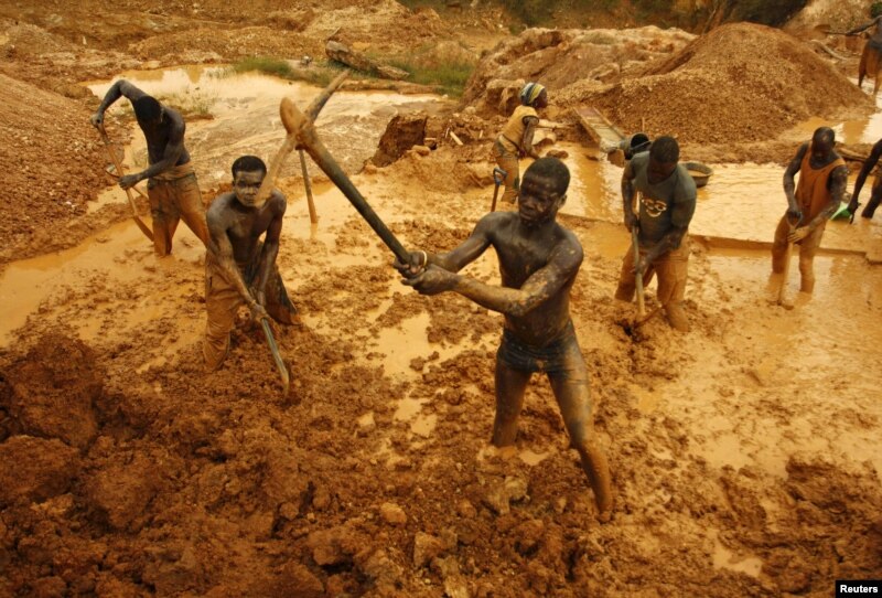 矿工在加纳西部的露天矿区开采黄金(2011年2月15日) AP