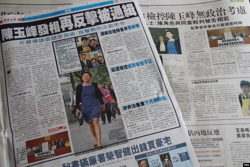 香港媒体跟踪报道占领中环运动核心成员陈玉峰遭检控事件(美国之音海彦拍摄)