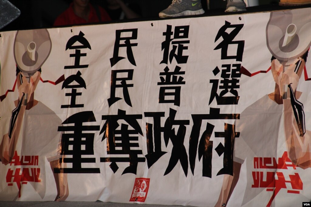 香港 — 发起2012年反对国民教育洗脑运动的香港学生组织,星期一晚在特区政府总部外的公民广场举行集会,要求全民提名特首候选人和全民普选。
