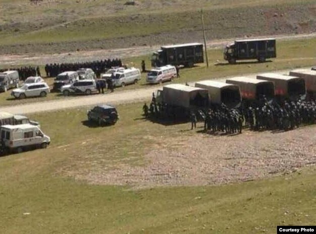 8月13号大卡车把大批军警从附近的西宁市和格尔木市调来当地。军警和抗议民众经过三天的对峙后,8月16号军警对抗议民众施放催泪弹,还用高压电棍和枪托毒打他们,以驱散抗议队伍。据称是这次抗议领袖之一的一位社区领导人下落不明。