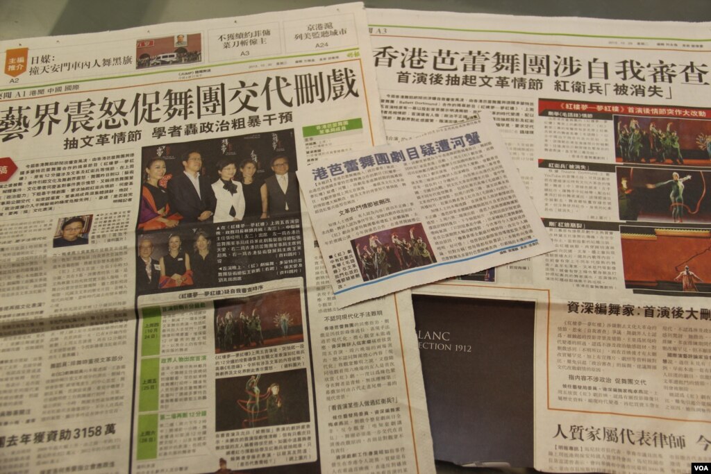 香港媒体报道香港芭蕾舞团“政治干预艺术”事件