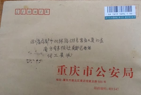 第二天下午,何先生赶到重庆市公安局上访。本来重庆市公安局信访接待周五下午不是"为人民服务"时间,但今天特为何先生开了个小灶。大概一方面他昨晚将他的遭遇上了他的微博,一时全国與论哗然。另一方面,可能警方也知道他是名人了,故特别侍候。(要是真正弱势的访民,结局是什么?警方、访民自己都清清楚楚。)