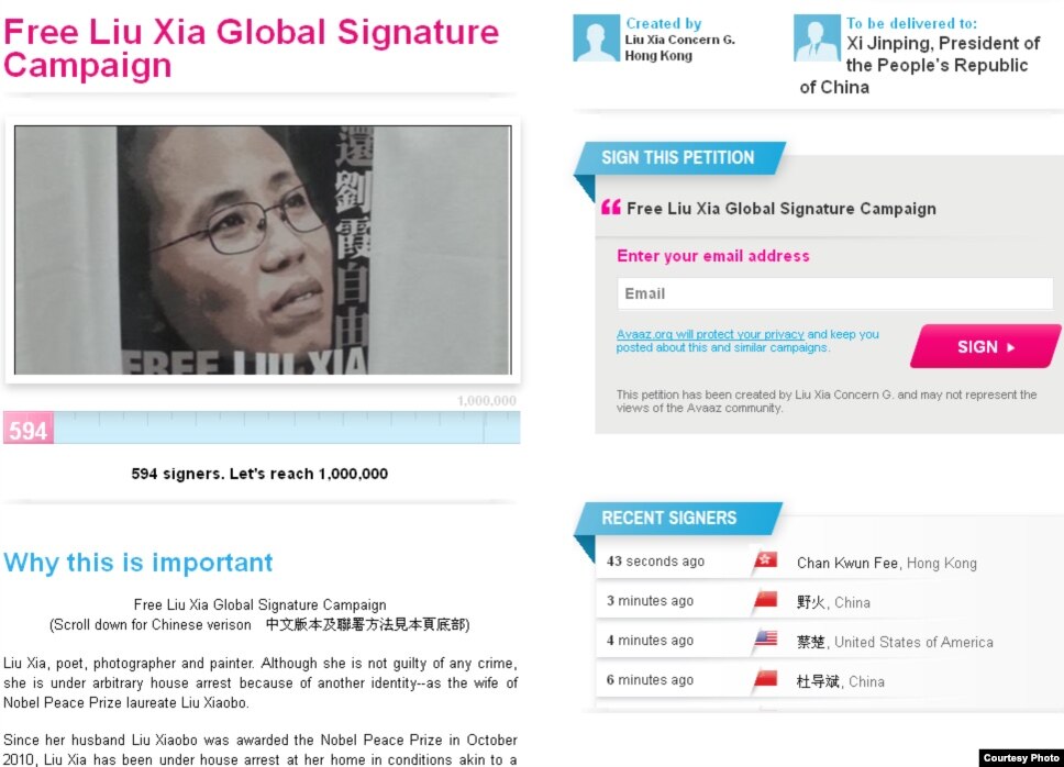 香港“刘霞关注组”发起“还刘霞自由”全球网上联署活动(网络截图)