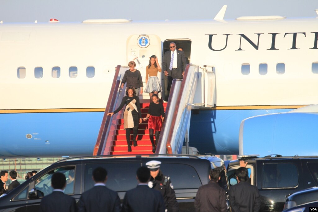 美国第一夫人米歇尔乘专机抵达北京,开始对中国进行为期一周的访问(美国之音东方拍摄)