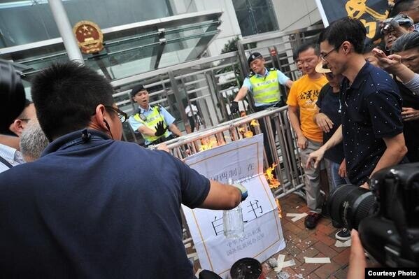 香港泛民团体到中联办抗议香港白皮书(推特图片)