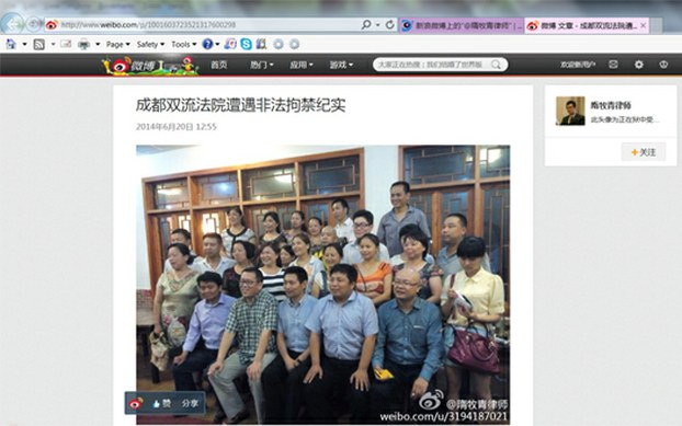 广东律师隋牧青周四为成都双流县被控涉嫌非法游行示威的出租车司机辩护时屡遭打断,庭审结束后,法官又宣布将在三天后才继续开庭,隋牧青与法官理论时因指责对方而遭到非法拘禁,3小时后才获释。此外,逾百名律师联名抗议律协拟秘密修订的两部限制律师行为的法律。有律师认为,当局对于他们的打压将会持续,只有“抱团取暖”才有望与当局抗争。