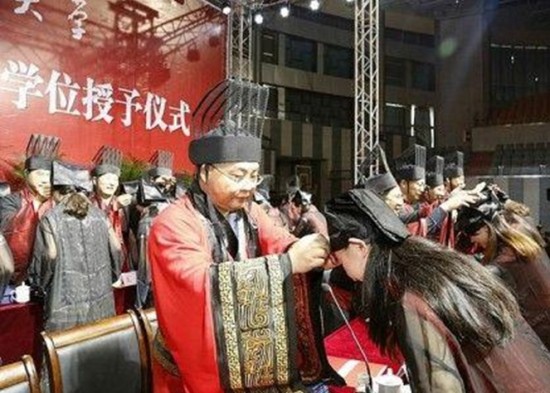 江苏师范大学毕业礼上,师生穿上传统汉服。