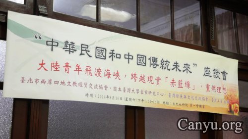 (参与2014年8月19日讯)時間恰逢抗戰勝利69週年之際,受臺北市兩岸四地文教經貿交流協會舉辦“首屆海峽同心行——大陸青年臺灣中華文化之旅”之邀,十多位致力於研究民國史和台灣民主進程的大陸青年遠赴臺北,拜祭忠烈祠諸烈士,拜祭先總統蔣公、故總統經國先生,參觀國史館,軍史館,故宮博物館等標誌建築,最近距離感受中華民國國統、法統在臺灣的傳承與回歸。交流會更安排大陸青年與國軍退役將領總會會長高安國中將,副會長郭年昆中將,國民黨中評委委員張世飛教授,工黨主席謝正一教授,鹅湖社長潘朝陽教授,前聯合報主筆陳曉林教授等在八月14日與16日各舉辦名為「中華文化和南京憲法,臺灣民主化」「中華民國與中國傳統未來」的座談會,希翼藉助彼此的懇談與傾聽,互增瞭解,借鏡臺灣漸次推進民主化的經驗,共同探討未來大陸轉型道路與中華民國憲政法統間的聯繫。