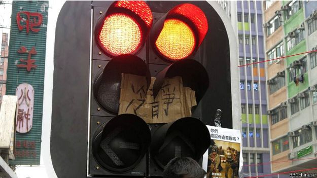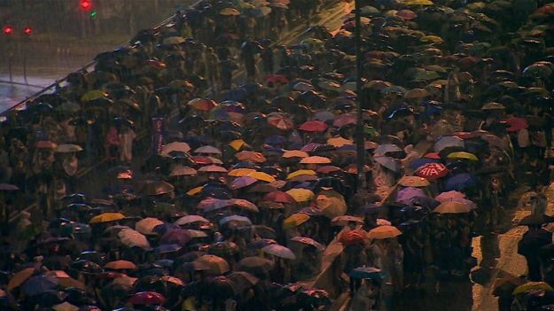 BBC记者现场所见,金钟的“占领区”上,市民们纷纷举起了雨伞,并未离开。香港立法会议员“长毛”梁国雄在Facebook上形容,这实现了“雨伞革命”。