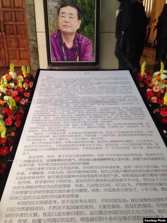 大批警察在现场及周边监控,但没有干扰追悼会。不过,包括民主人士何德普、人权活动人士胡佳、学者陈永苗、作家莫之许在内的10多人被警察阻止参加。广州的作家野渡近日赴京参加追悼会,在火车站被带回。