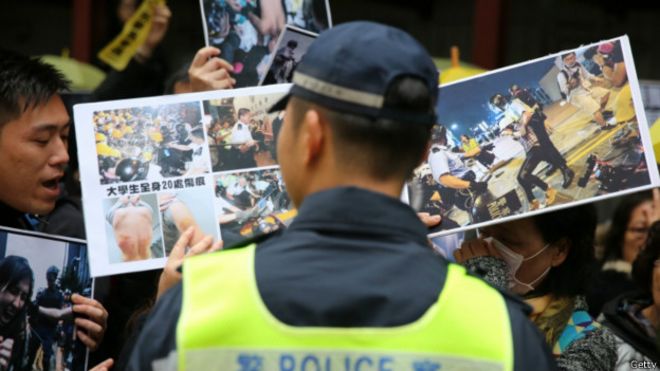 香港十多个团体周日(12月7日)举行游行,从湾仔修顿球场到警察总部,再举行集会,抗议警方在占中期间涉嫌滥用武力。