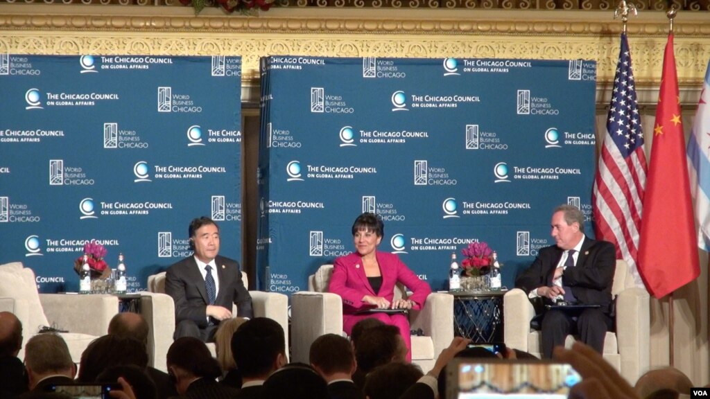 美中高级官员在芝加哥出席活动。 (美国之音 黎堡拍摄)