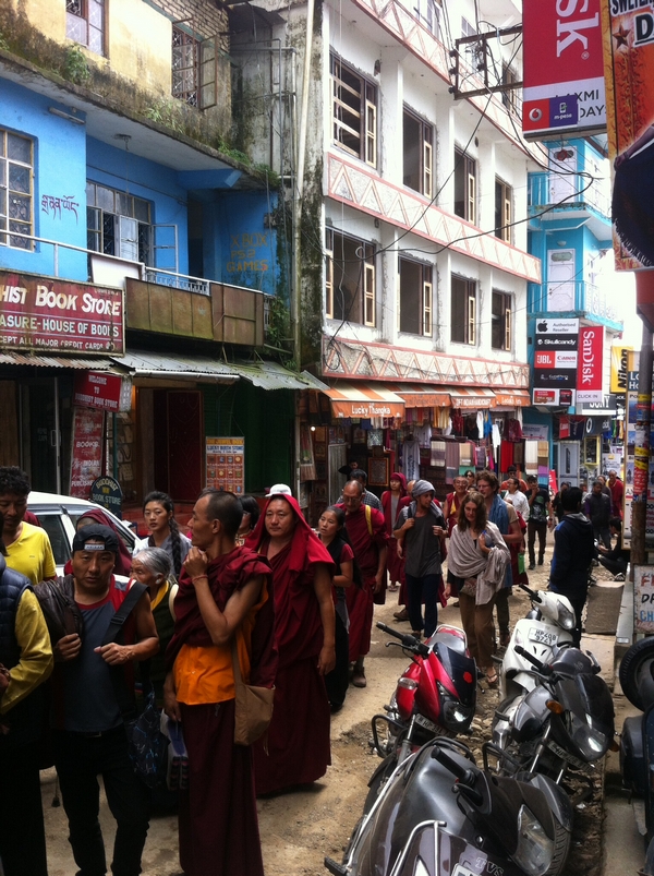 因为达赖喇嘛和西藏难民,达兰萨拉的简陋街道和地处偏远只是表象。中午,讲座散场,镇上有了生气。各类商店都已开门:西藏人和印度人的工艺品店,杂货铺,小超市,洗衣店,餐馆,网吧,咖啡馆,多如牛毛的旅行社,水准不俗的几家小书店……这里既是另一个“小拉萨”,也是加德满都游客区的迷你版,但更自由,更政治,更有灵性,也更cosmopolitan,因为印度政府对西藏难民更多同情宽容,因为西藏的宗教和文化在这里不受禁锢真正延续。西藏流亡政府安全处,西藏青年大会和其它组织,难民学校,还有各类NGO,散布弯曲而又起伏的小街。你在达兰萨拉可以听到各国口音,见到各色人等:同情西藏的西方志愿者,忙着购物的台湾师奶,一身绛红迦裟的西方喇嘛和尼姑,呆得无聊的以色列女子,到此一游的印度客,对着寺庙壁雕大赞“都是金子”的四川老和尚,或许,还有隐姓埋名的中国间谍。