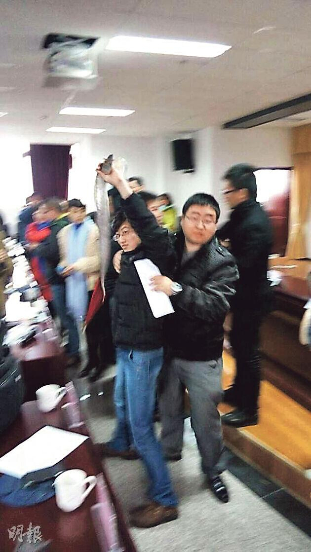 2015年1月9日,云南昆明。极权当局正紧锣密鼓地给已经疲态百出、生锈不灵的宣传机器加油维护,一场名为“共青团云南省委网络宣传培训座谈会”正在上演。演出按当局的“剧本”演到快近尾声时,真正的高潮出现了,有人向报告主讲人、红朝热捧的网络写手周小平“敬献”带鱼一条。