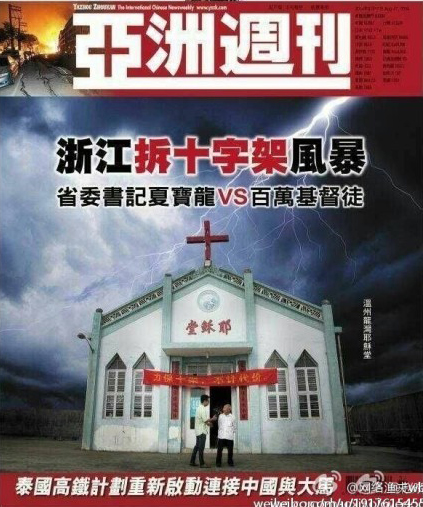 浙江当局自去年以“三拆一改”的名义,指教堂十字架是违章建筑,进行强拆,遇到信徒抵抗,公安打伤抵抗者,甚至有信徒被当局刑事拘留或逮捕,事件引起国际社会及媒体关注。香港《亚洲周刊》也曾多次深入报道温州强拆十字架事件。