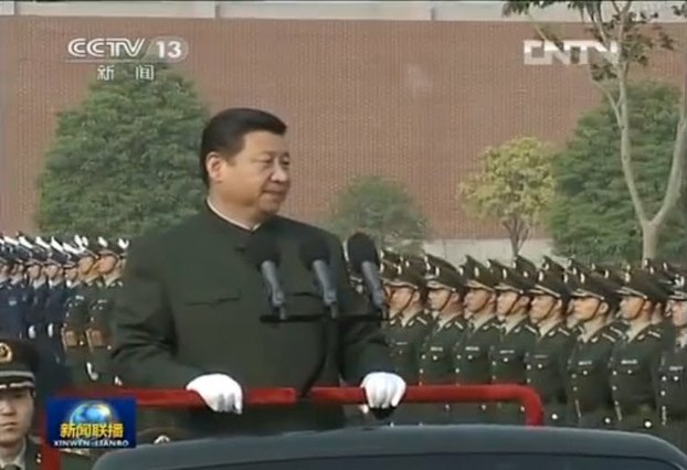 图片: 习近平于2013年视察国防科学技术大学,并检阅官兵方队。 (网络视频截图)
